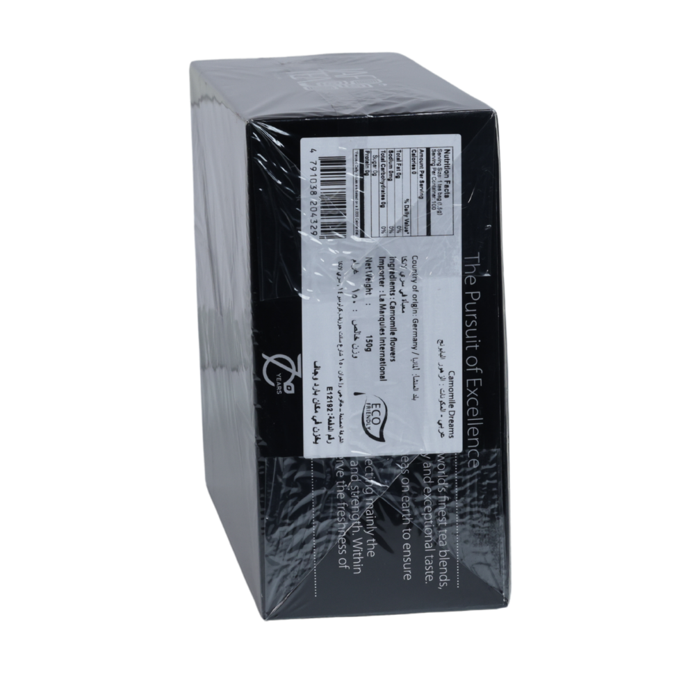 A soothing, caffeine-free infusion of pure chamomile blossoms with a gentle floral aroma and calming flavor. Packed in 100 individually foil-wrapped tea bags in eco-friendly packaging to ensure lasting freshness.