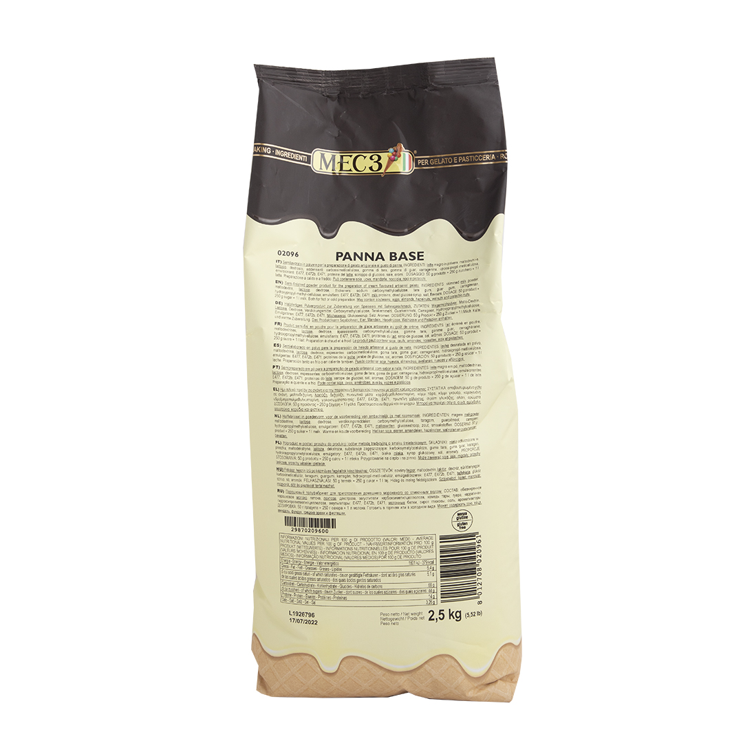 MEC3 Cold Base Panna Base (2.5 kg) is a semi-finished powder designed for making cream-flavored artisanal gelato. It provides a smooth, rich base with a delicate cream taste, ideal for creating high-quality gelato.